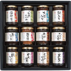〈商品内容〉●福神漬90g・くきわかめ75g・大葉みそ100g・鯛みそ100g・鰹ひじき40g・鮭茶漬60g・牛肉ごぼう55g・たらこ昆布50g・鶏そぼろ50g・のり佃煮95g・えのきだけ90g・黒豆100g