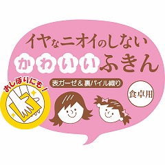 除菌繊維使用で生乾きの嫌なにおいがしにくいフキンです。かわいい絵をプリントしているのでお手拭としてもご使用いただけます。
