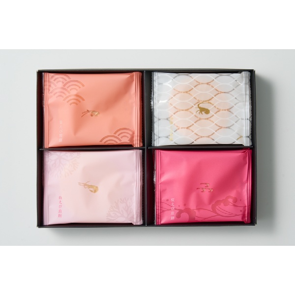 白えび、伊勢えび、甘えび、桜えびの4種類の煎餅が入ったギフトです。