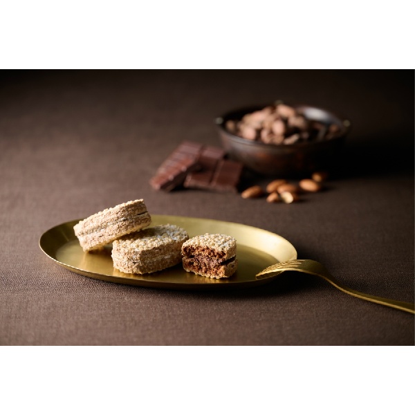 アーモンドパウダーの生地にさらにアーモンドダイスを入れることで、さっくりとした食感とともに、ショコラの風味豊かなクリームを楽しめるダックワーズです。